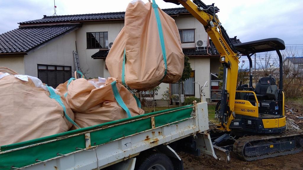 1月28日夕方に重機と各種必要資材を満載したダンプで長野県上田市を出発。フレコンパックと言う瓦礫を1tずつ袋に入れられる物も20枚用意しました。七尾市ではフレコンで荷下ろしの場合のみ、フォークリフト等で降ろす?と言われた為です。でもそんな面倒な事をしないでダンプOKにすれば全く問題がないのですけどね…仕方ありません。