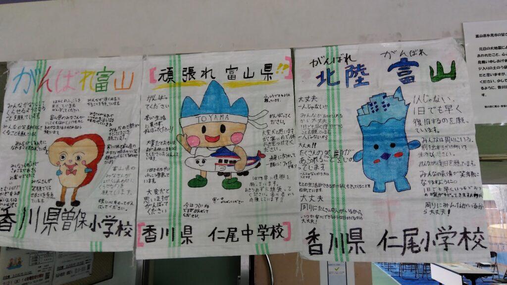 長い間、当団体櫻井は「一日でも長く重機・ダンプを借りたい」との思いだけでダンプカー車中泊を繰り返しておりましたが、見るに見かねて??氷見市社協の澤田さんと氷見市久目地区社協の上野さんが「久目交流館でお休みになりませんか?」と旧久目小学校跡の立派な建物をご提供くださいました!本当に感激です!!久しぶりに背中を伸ばして眠れます!これからも更に頑張って活動が出来そうです。
