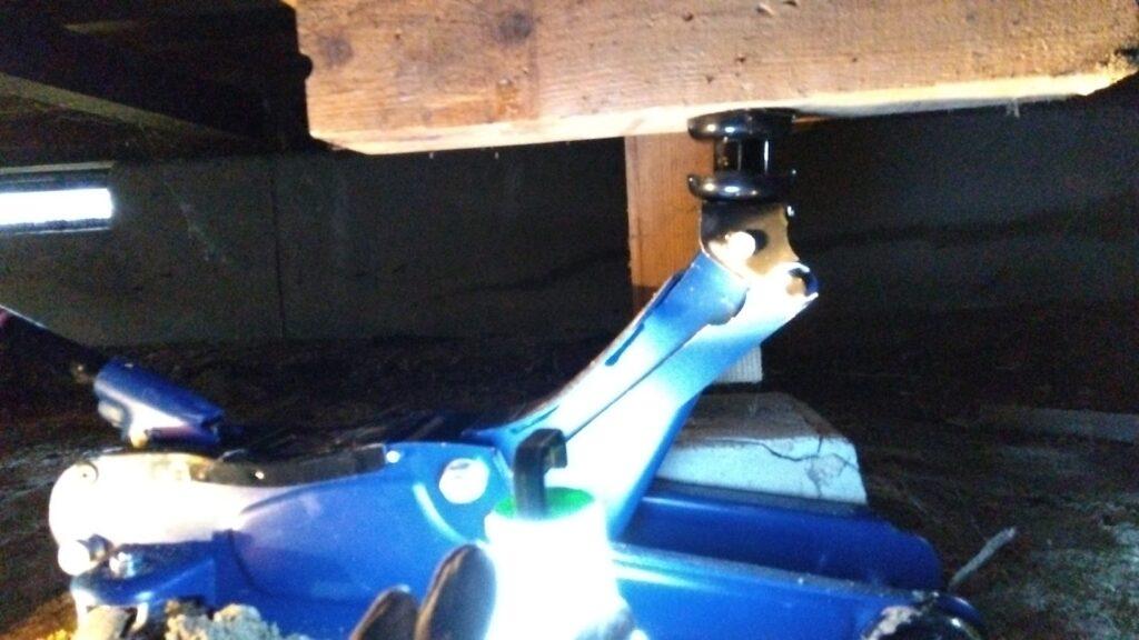 今日は以前からヘルプ要請のあった七尾市のお宅様に伺います。液状化で床下の土地が下がり、その結果として部屋を歩くとまるでトランポリンのように弾んでしまうのです…。余震もある中で、このような嫌な揺れはストレスです。床下に潜り込み、束柱と束石の間に出来てしまった約40㎜の隙間を専用スペーサー叩き込みで修正します。