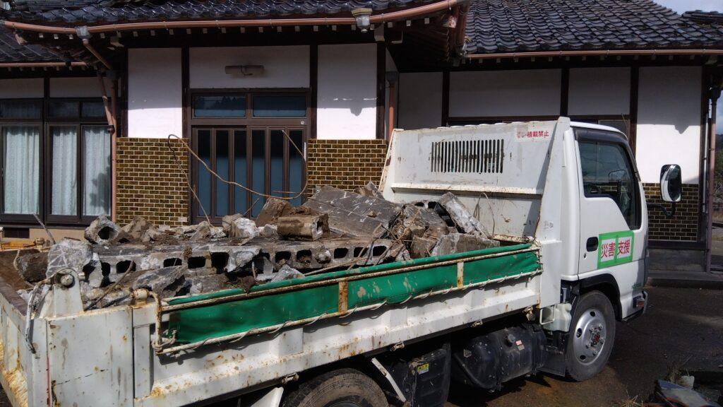 そもそもブロックの瓦礫を捨てるのにダンプ禁止!手で降ろせ?って言ってる時点で激甚災害の認識が無い行政だと思いますよ…日曜日の自治会の資源回収じゃないんですから。指示通りフレコンパックに詰めてダンプに載せますが、ユンボで吊れる限度もありますし、袋に入れる手間が尋常ではない。「これ…明らかに違うわ」と感じます。こんな非効率な事をしていてはダメですので、被災ゴミではなく産廃物として業者に捨てようかとも考えています。ただ!ここでも問題があるんですよ…産廃物を運んで処理してもらうには、その地での事業登録が必要な事もあるんです。持ち込んでも受け入れてもらえるのかどうか?…そこを必死に調べています。お役所に懇願しても全く聞く耳を持ってくれませんが、しっかり汚れた作業着を着ている者同士なら〝そこを何とか…〟を聞いてくれるんじゃないだろうか?と期待しています。