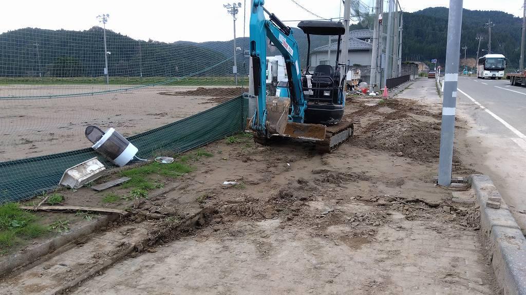 まぁ良く捉えれば、こんなミニショベルで頑張ってる姿を知って何か心に届いたのかな?と言う捉え方もありますが、このまま私に任せたらグラウンドを壊されるって思って焦ったのかも知れません(笑)。それはどっちでもOK!肝心なのは、この広いグラウンドが駐車場やヘリポートとして運用できれば、絶対に復旧復興の速度は増すのは確実です!教育長がしっかりと腰を上げてくれて本当に良かった!