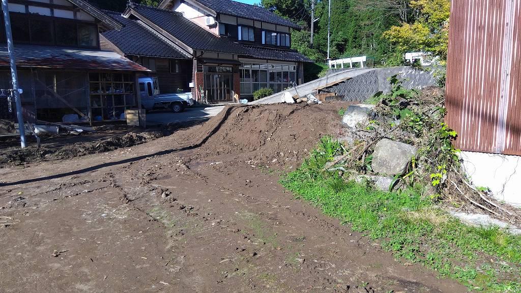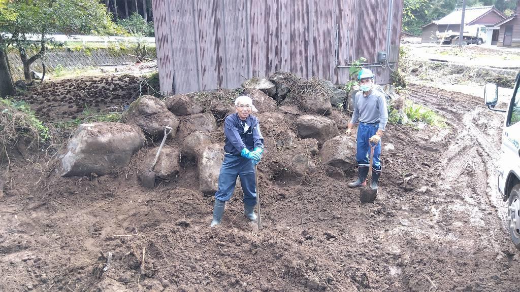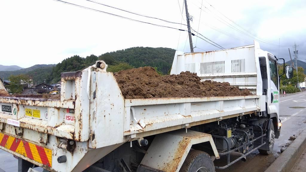 ぬかるんだ地面上の泥撤去!応援隊とダンプ5杯分搬出!完了