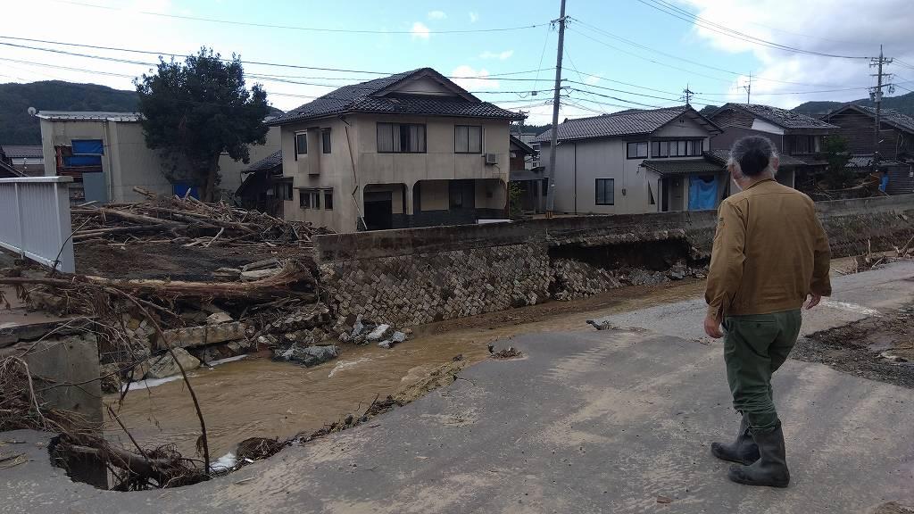 山が崩れて自宅側に川の流れが向いてしまったお宅。この土砂撤去も行います。
