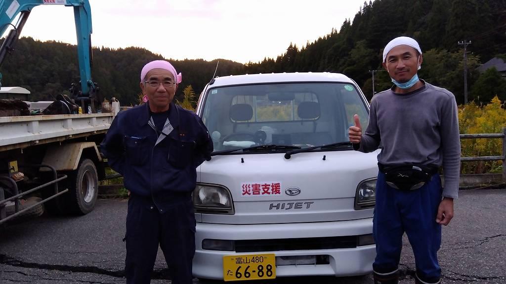 積極的に能登半島災害被災地に向けて活動されている中坪さん・魚谷さん。中坪さんは「災害ボラには軽トラがあったら便利だ~!」と購入されました!。私の乗っているダンプや重機にたくさん貼ってある「災害支援マグネットステッカー」を一枚プレゼント。片道2時間…往復4時間。それでも動かないと終わりません。動き続けられているボランティア皆様のスピリットに敬礼です。今日は本当にありがとうございました!!