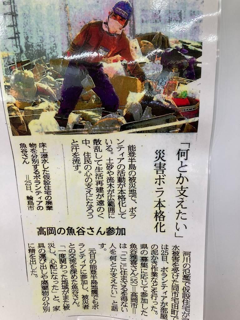 魚谷さんは私と同学年!!本当に誠実に着実に継続的にの三拍子で能登半島の災害支援に尽力され、その事が新聞記事になりました!是非読んで下さい。魚谷さんは寡黙な方なのですが、底知れぬやさしさと情熱の人です!