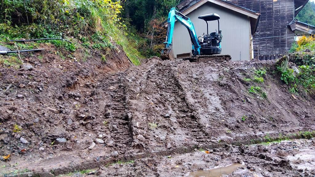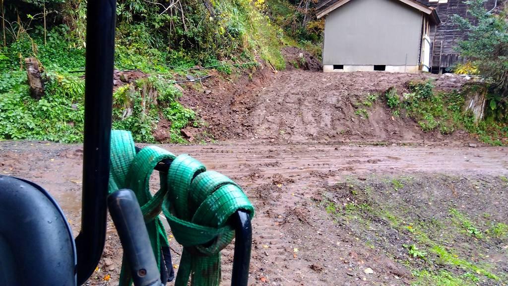 でも…昨日からミゾレ交じりの雨が沢山降っているので、現場に登るのも一苦労…。アームで引き揚げながら何とか登りました。更に泥沼化している裏山。嫌な予感しかしませんが、ここで暮らして行く方が少しでも安心して冬を越せるように、既に無い力を振り絞っています。正直、苦しいです。綺麗ごとではありません。「だったら帰ればいい!」確かにそうです。でも弱音を吐いてでも毒を吐いてでも?やり遂げなければならない事と言う物がコレだと思って向き合っています。