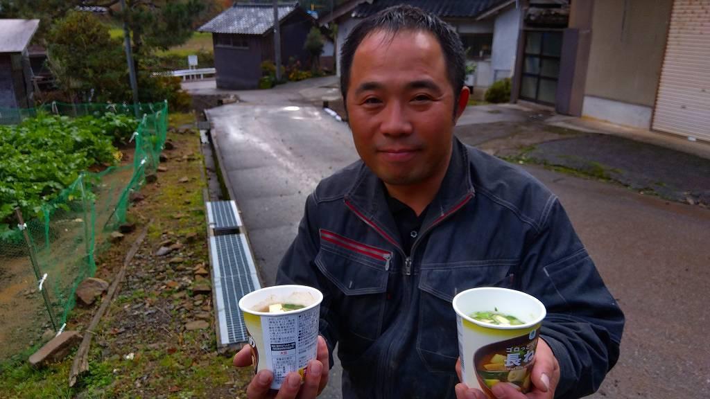遅いお昼を食べます。食堂まで行くと約2時間ロスしますから今日は全員お弁当持参。山田先生(氷見市社協)がダンプの上でお湯を沸かし、皆にカップみそ汁をご馳走してくれました!!こんな現場で暖かな物を頂けるなんて…言葉にならない。本当に美味しかったです!!。上野さんは「浩二さんちゃんと食べれてないだろうなぁ~って思ってコンビニだけどお弁当買って来たよ~!」と、いつもの超ニコニコスマイルで沢山のオニギリ・乗り弁当を下さいました…。ありがとうございます!