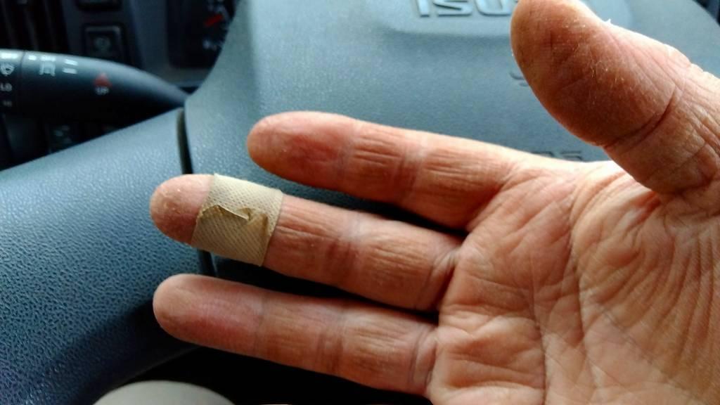 セメントの影響なのか?手がガサガサで布が引っかかる(笑)。スマホの指紋認証も受け付けなくなったので手の写真をUPしても何ら問題がなさそうです。